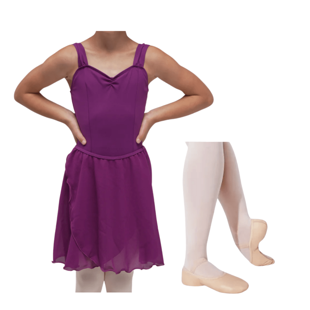 -plum leotard, skirt optional